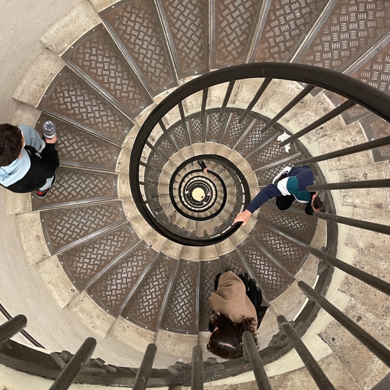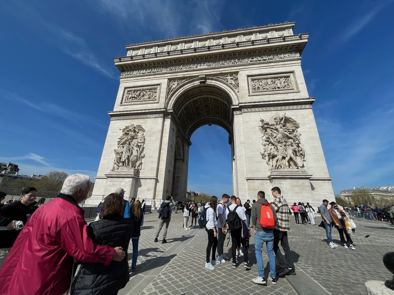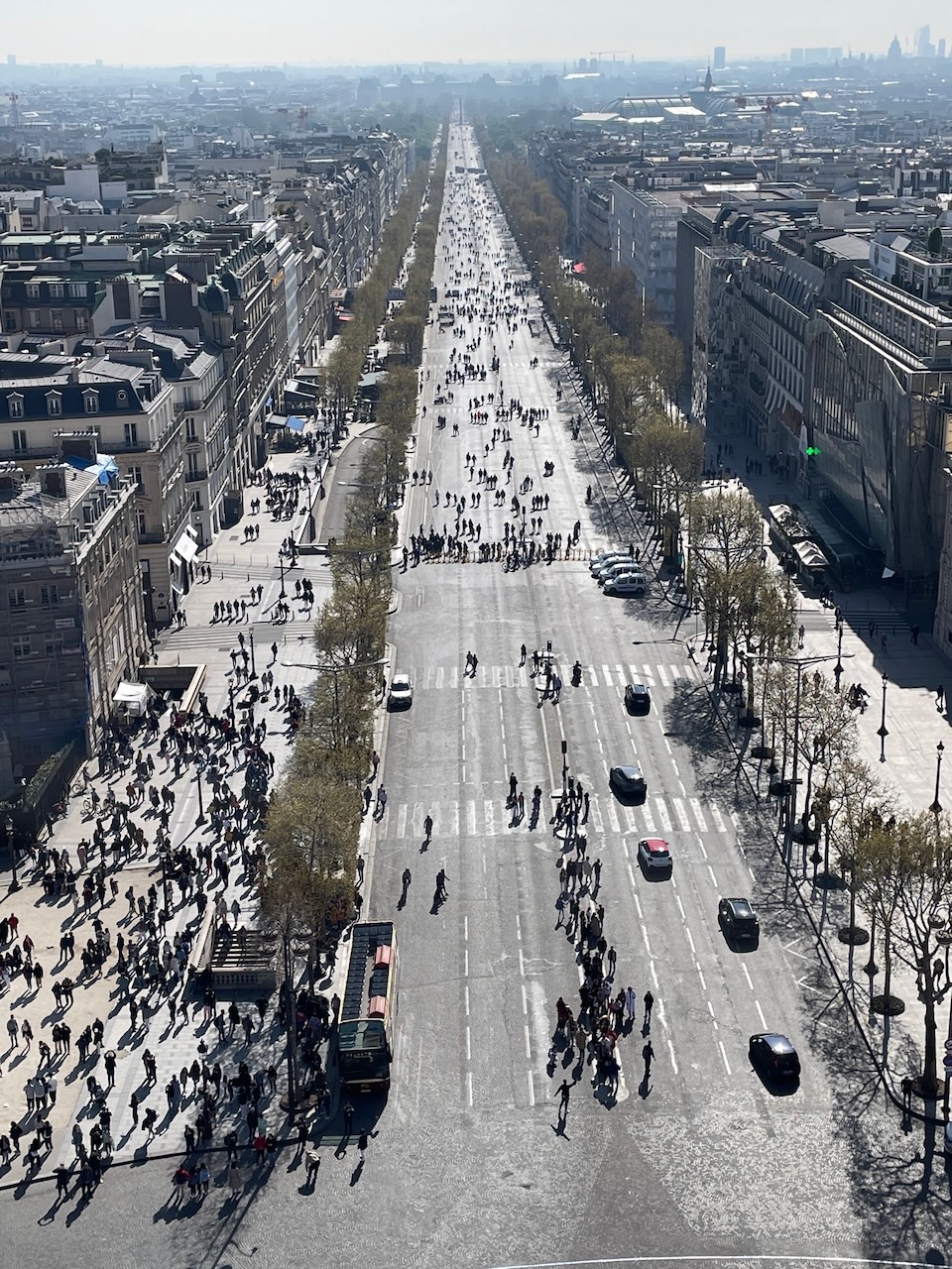 De drukte rondom de Eiffeltoren deed ons besluiten de volgende dag vroeg naar de Arc de Triomphe om de drukte voor te zijn. Dat lukte best aardig, want hoewel we even moesten wachten voordat we naar boven konden, de vertraging werd vooral veroorzaakt door verhoogde beveiligingsmaatregelen. Werkelijk alles moest door de scanner.