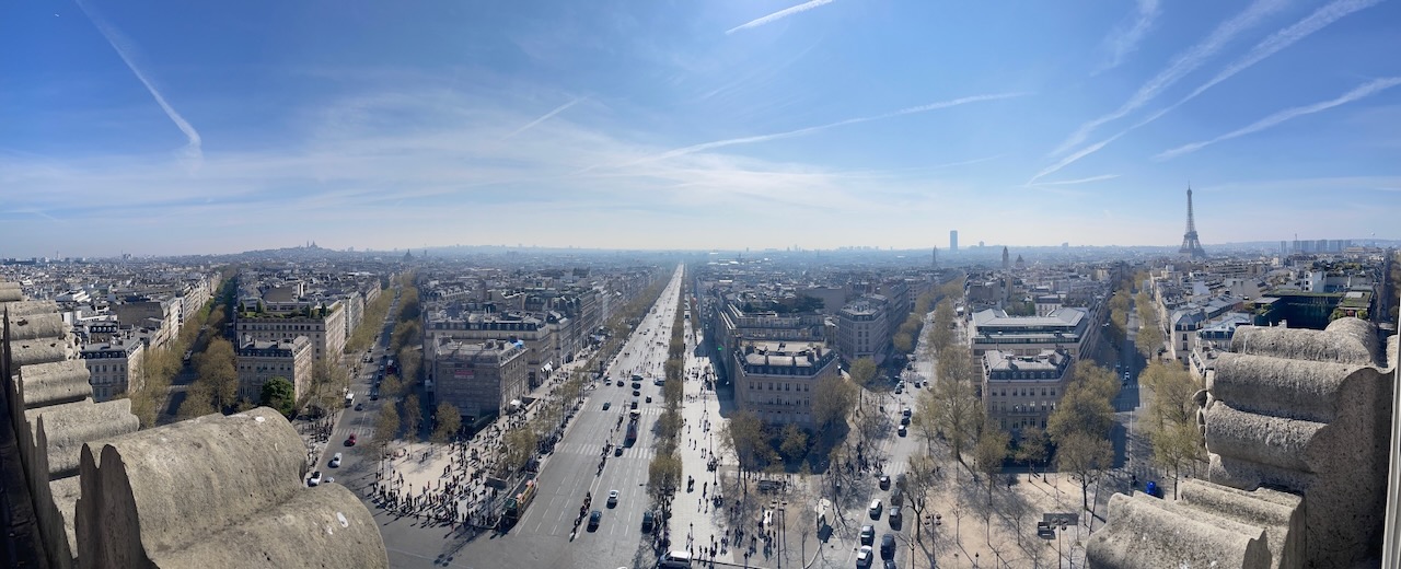 Hét grote voordeel van de Arc de Triomphe boven de Eiffeltoren is natuurlijk dat je vanaf de Arc de Triomphe de Eiffeltoren kan zien! Links zie je ook nog Montmartre met bovenop de Sacré-Coeur. Als ik heel eerlijk ben vind ik het uitzicht vanaf Arc de Triomphe ook veel mooier, midden op de historische as van Parijs.