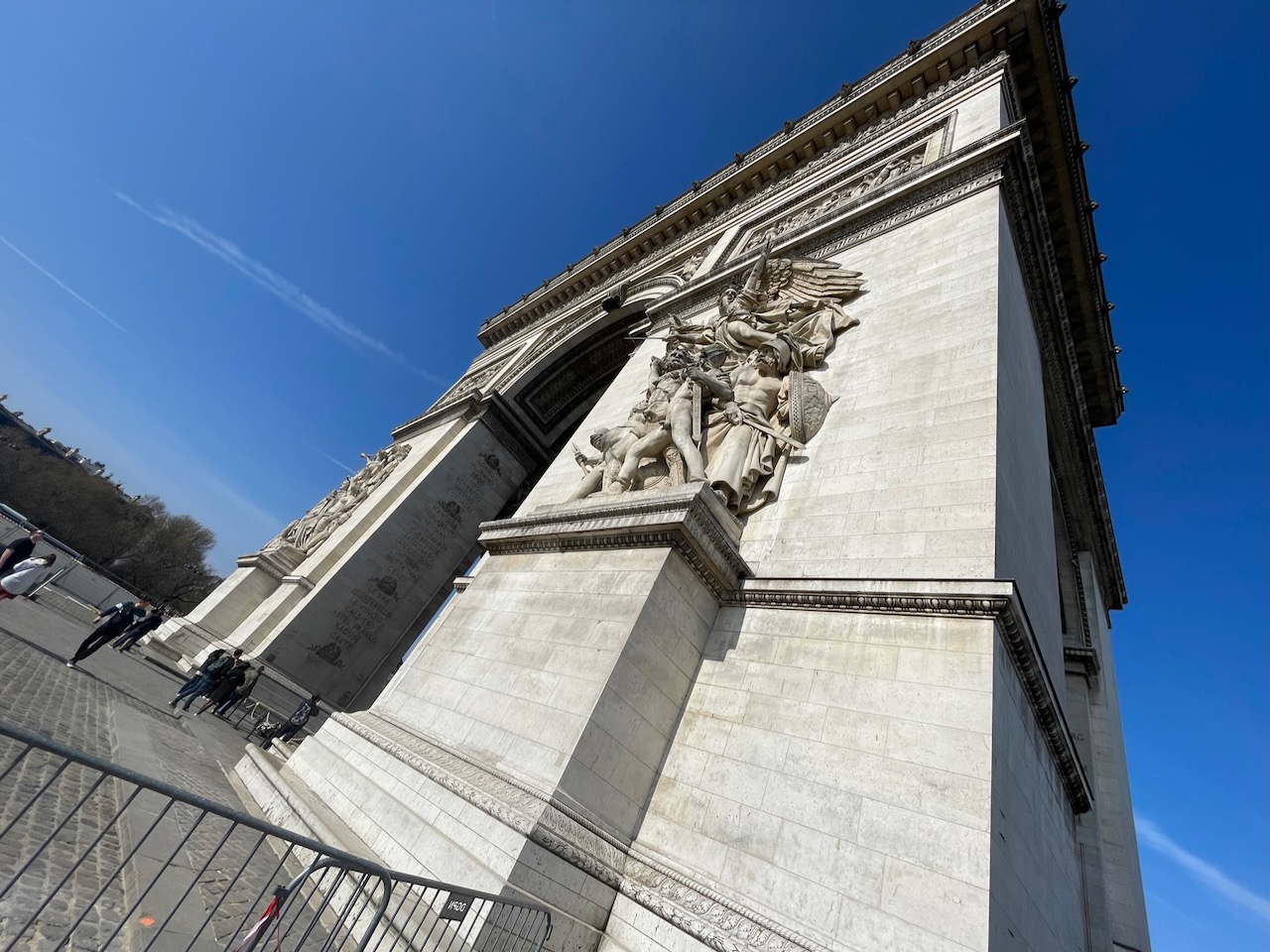 De drukte rondom de Eiffeltoren deed ons besluiten de volgende dag vroeg naar de Arc de Triomphe om de drukte voor te zijn. Dat lukte best aardig, want hoewel we even moesten wachten voordat we naar boven konden, de vertraging werd vooral veroorzaakt door verhoogde beveiligingsmaatregelen. Werkelijk alles moest door de scanner.